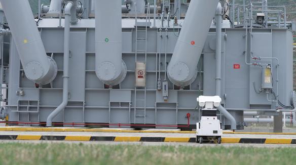 无人机对变电站进行全站扫描,地上的智能巡检机器人配备“火眼金睛”,可以识别设备渗油、发热等问题,同时阿站内几百个摄像头“睁开眼睛”,实时监测户外大型充油、充气设备,他们“分工合作”,解决以往运维人员人工巡视无法覆盖所有巡检点位的痛点,观察到肉眼无法观察到的死角。
