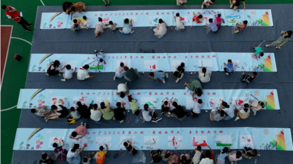 随着“华庆油田·百里画卷”徐徐展开,“萌娃画华庆”亲子绘画暑期活动正式拉开序幕。绘画采取复刻图(简笔画)涂色形式,以华庆风貌、油田工作、石油生活为主要题材。孩子们和家长围坐在一起,大手握小手,全体总动员,描绘出一幅幅生动有趣的画面,华庆油田大开发的火热场景跃然纸上。随着绘画收尾成品的显现,亲子之间的交流更加深入,孩子感受到家长的陪伴和关爱,也加深了他们对华庆文化的理解和认同。
