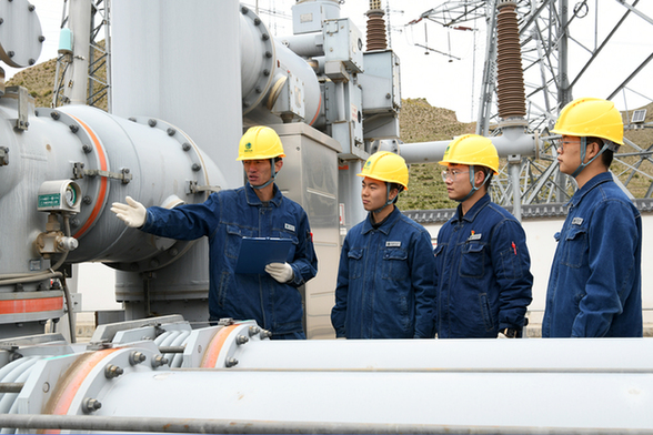 10月16日,国网武威供电公司实施等电位补装调整板螺栓开口销及紧固螺栓作业。李国珲 摄