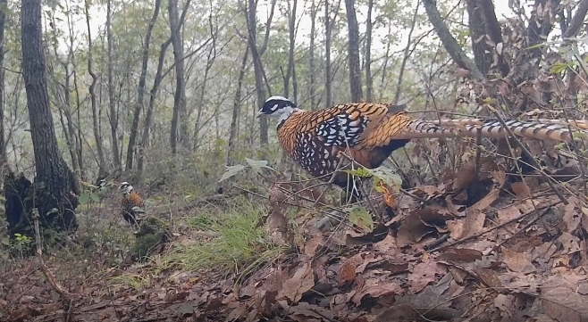 日前,甘肃省野生动植物保护站在开展白冠长尾雉调查研究过程中,在甘肃省陇南市康县南部通过触发式红外相机拍摄到白冠长尾雉活动影像。