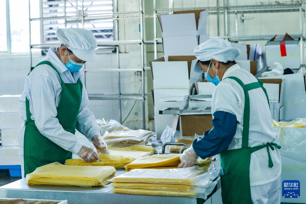 新华社照片,陇南(甘肃),2024年11月24日 11月21日,在甘肃陇南经济开发区一家豆制品企业厂区,工人在分拣豆皮。