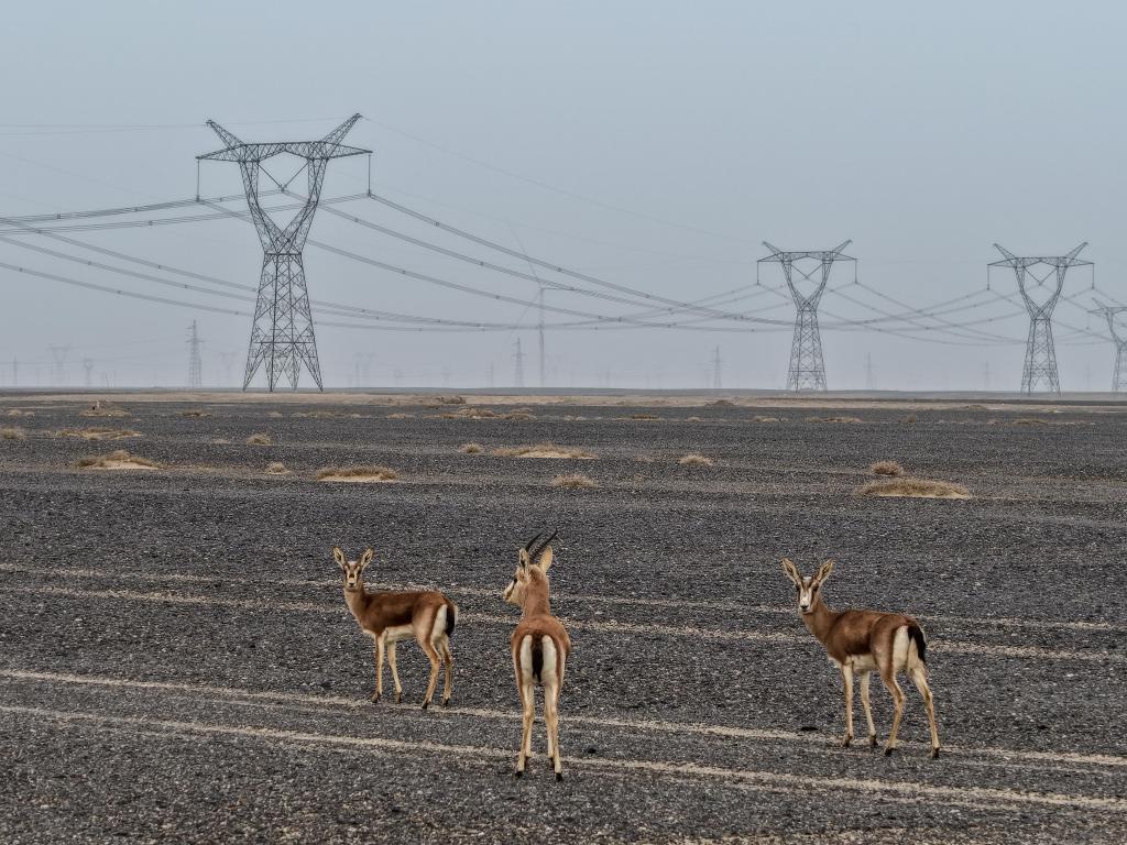 行走在这里,随处可见矗立在戈壁滩上的一座座 “大风车”。