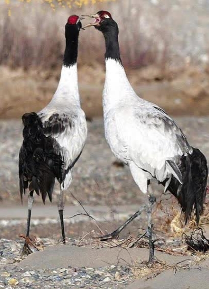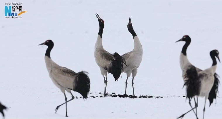 "近日,甘肃祁连山保护区祁丰自然保护站工作人员在巡护过程中,不仅拍摄到两只黑颈鹤的珍贵影像,更惊喜地发现其巢穴,由此确认有黑颈鹤在祁连山保护区定居。"
