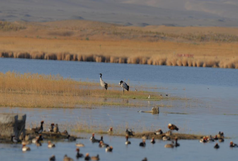 祁连山保护区首次发现定居黑颈鹤