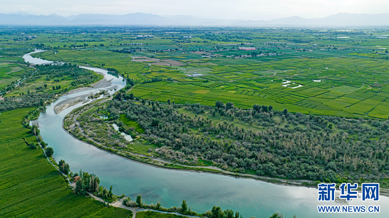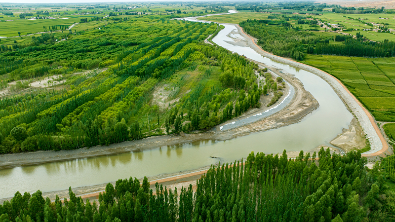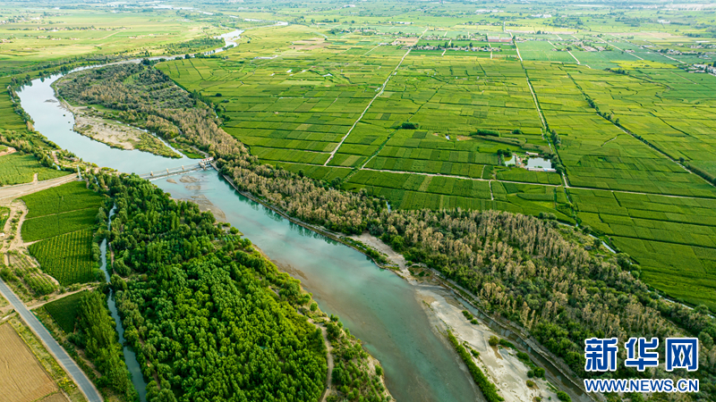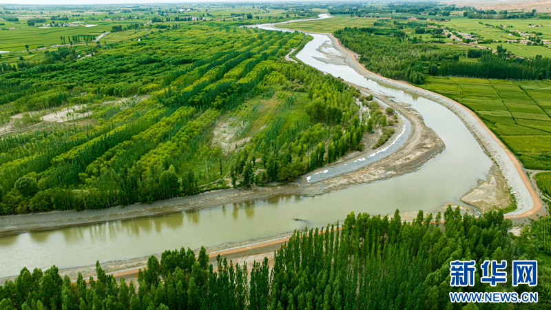 初秋时节,甘肃省张掖市黑河沿岸暑热消退,树木成荫、田野葱茏,充满诗情画意。新华网发(成林 摄)
