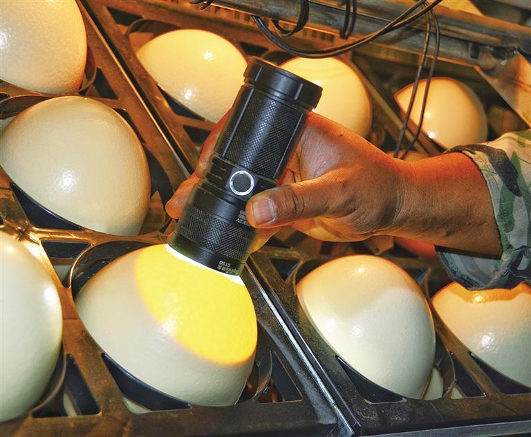 养殖鸵鸟以来,陶超边干边摸索,积累了丰富的经验,还利用线上和线下出售鸵鸟肉、鸵鸟蛋,闯出一条致富新路。幼鸵鸟养殖需把握三个关键技术。首先是保温管理,幼鸟必须在室内温度相对恒定的条件下进行喂养,温度不能低于20℃,饲料管理也要精细化,要防止鸵鸟误食铁钉、铁丝等异物,还要做好疾病预防,要及时给幼鸟打疫苗。一般情况下,幼鸵鸟喂养10到14个月后就能宰杀约60斤肉,一只收入4000元左右。母鸵鸟喂养两年半后开始产蛋,每只年产蛋量约50枚。