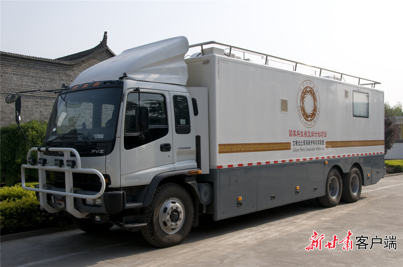 考古现场文物保护移动试验室。