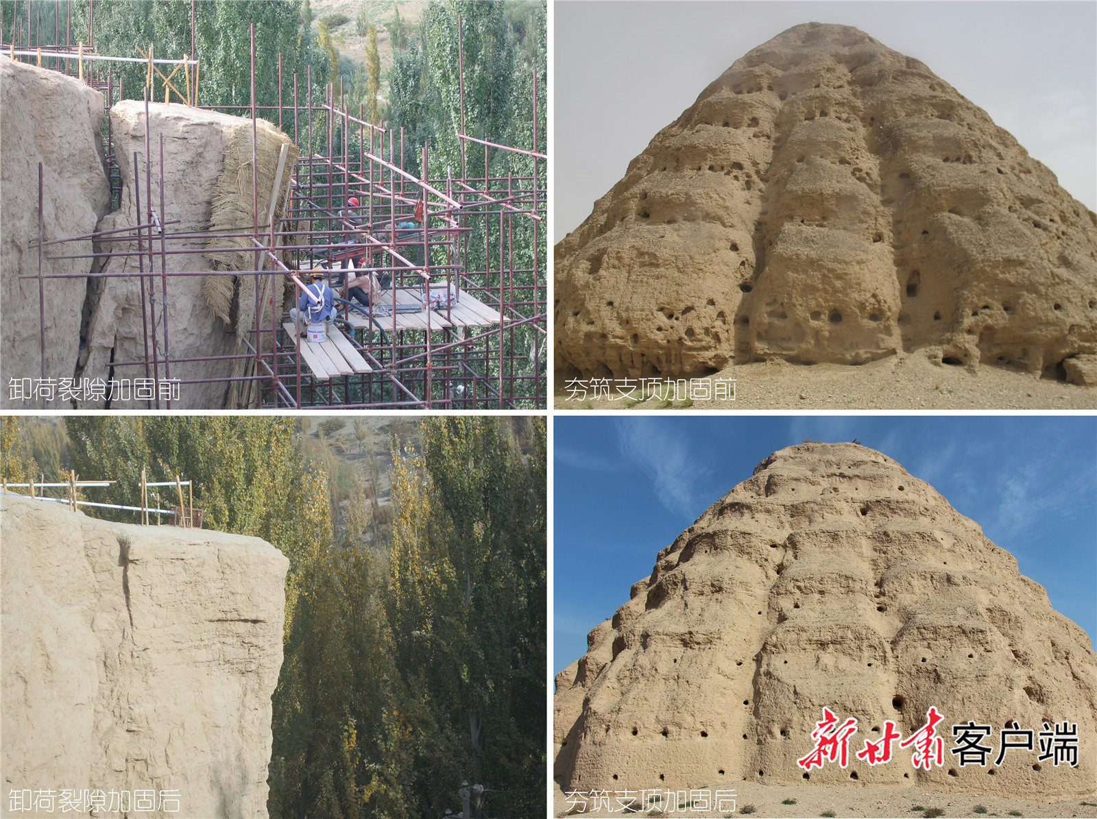 土遗址加固保护前后效果对比。