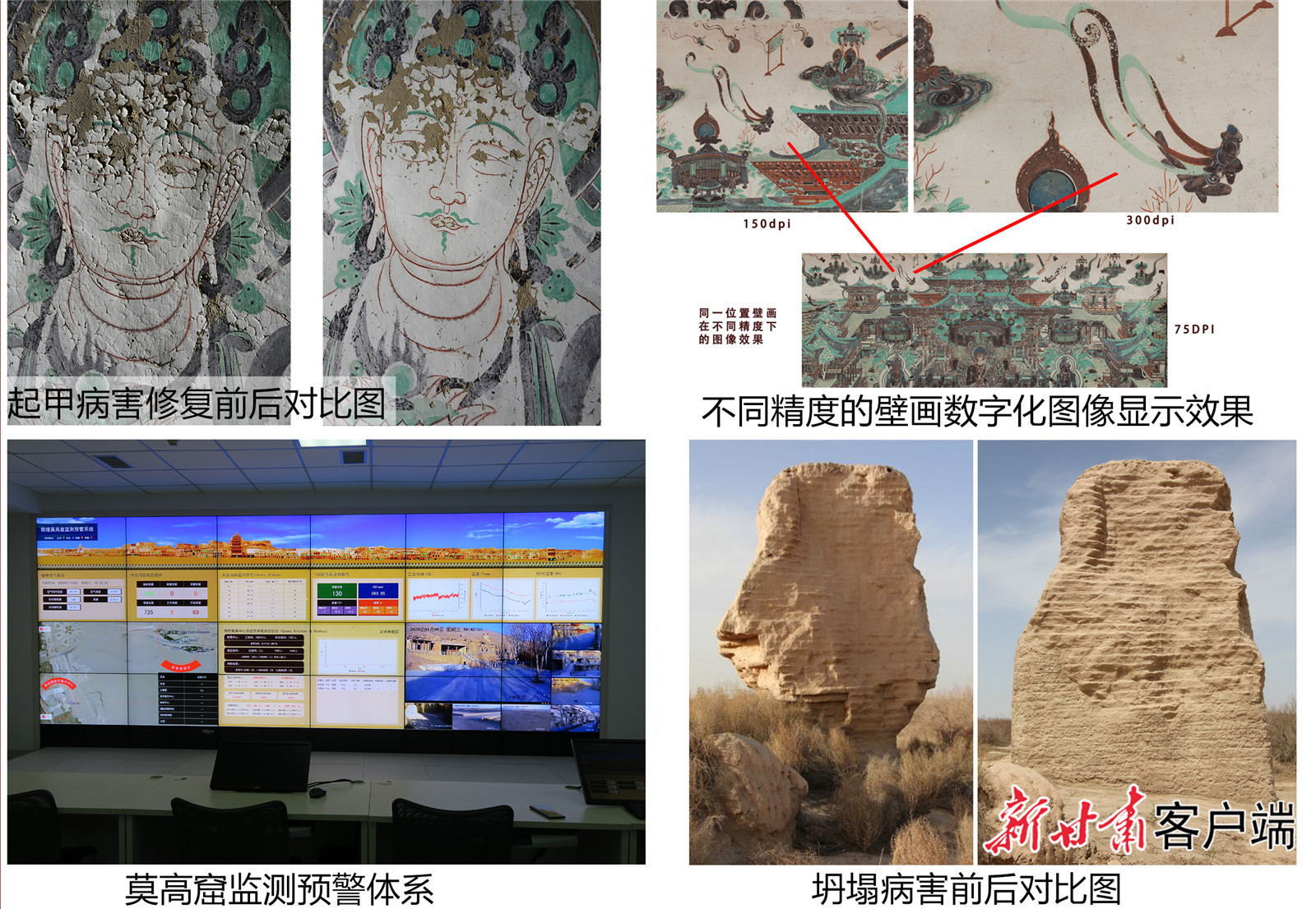 敦煌研究院在壁画、土遗址、文物数字化和预防性保护方面代表性成果。