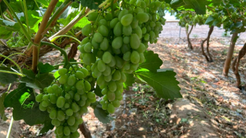 “这是极晚熟品种,口味清甜,北京上海等地的大超市都想和我们提前签订单。”张掖诚坤戈壁农业有限公司生产经理张彪说,自家企业在园区的葡萄挂果面积约500亩,年产量预计750吨,可实现产值1500万元。