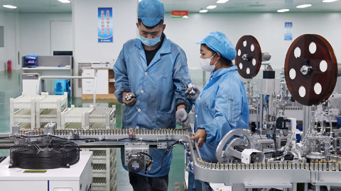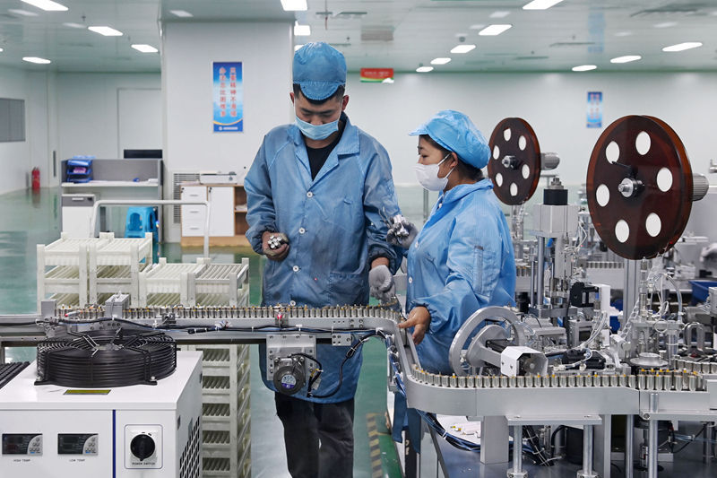 位于金昌经济技术开发区的甘肃金宏翔新能源有限公司,工人在电池生产线上作业。记者 范培珅 摄