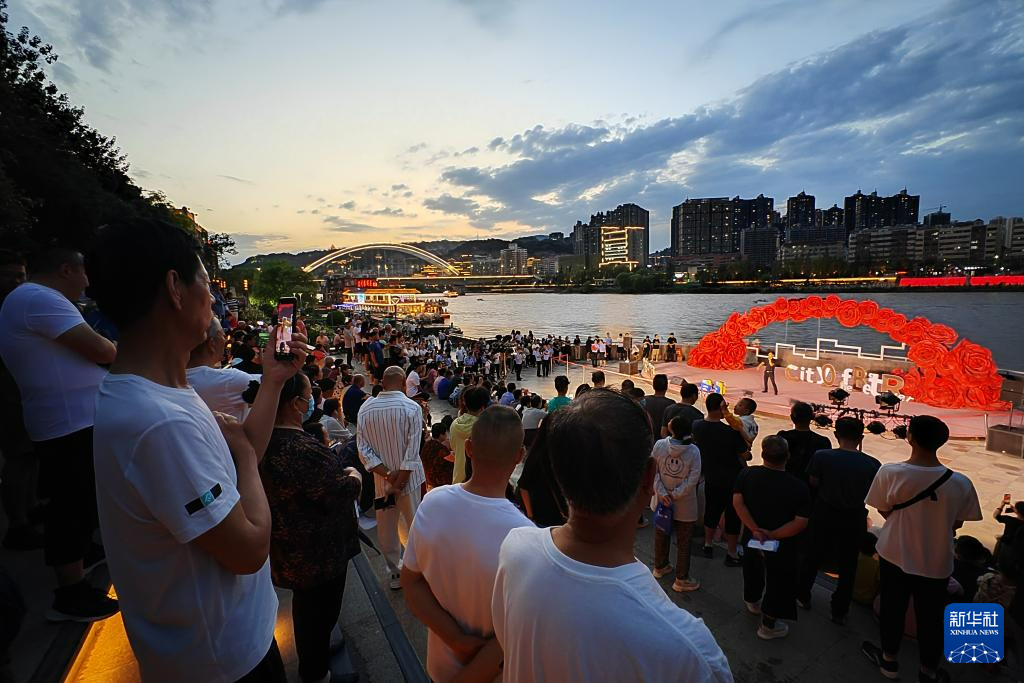 7月19日,在兰州市城关区,游客在黄河岸边欣赏黄河之滨百日千场音乐展演活动。新华社记者 范培珅 摄