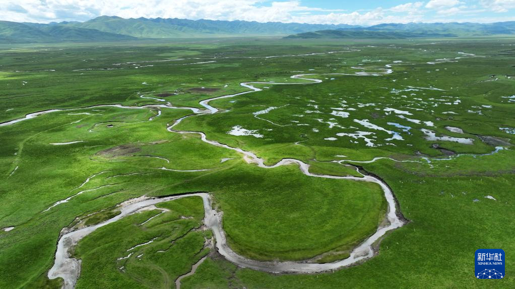 这是玛曲县阿万仓湿地景色(7月6日摄,无人机照片)。新华社记者 陈斌 摄
