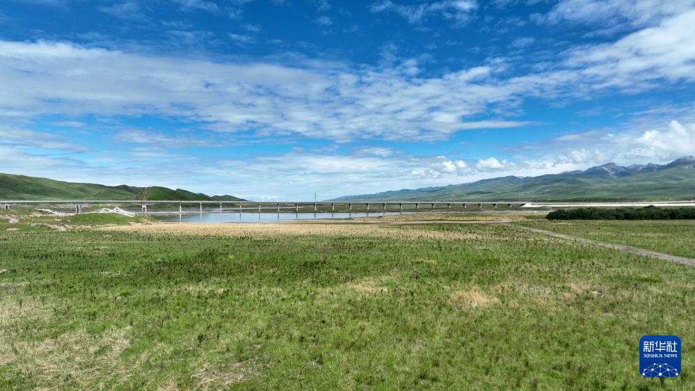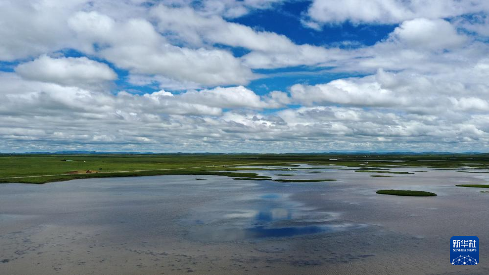 这是玛曲县阿万仓湿地景色(7月6日摄,无人机照片)。新华社记者 张可任 摄