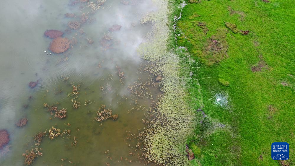 这是甘肃尕海则岔国家级自然保护区尕海湿地的景色(7月7日摄,无人机照片)。新华社记者 张可任 摄