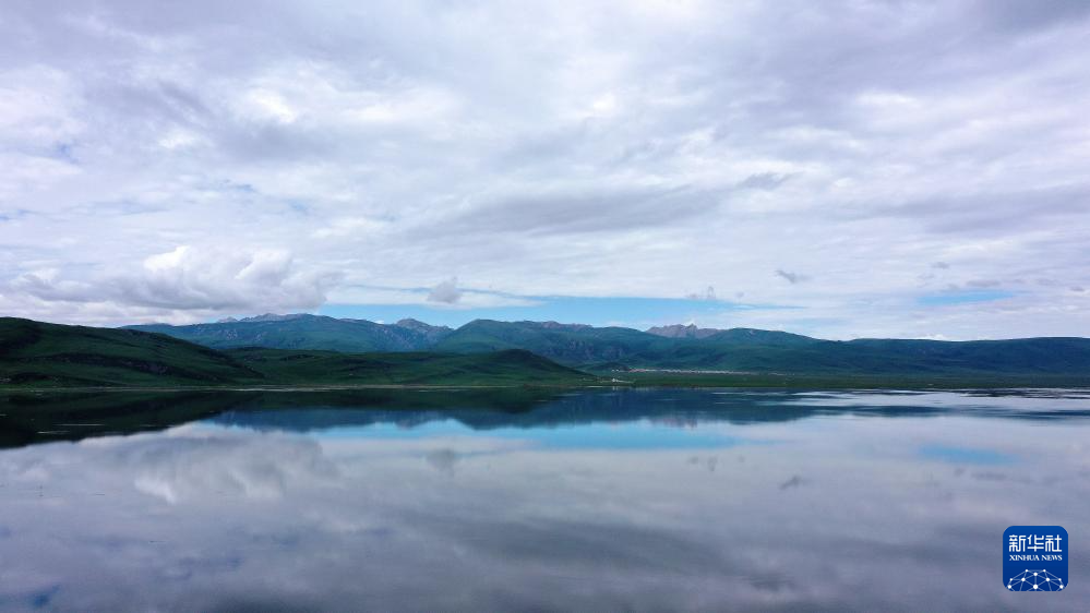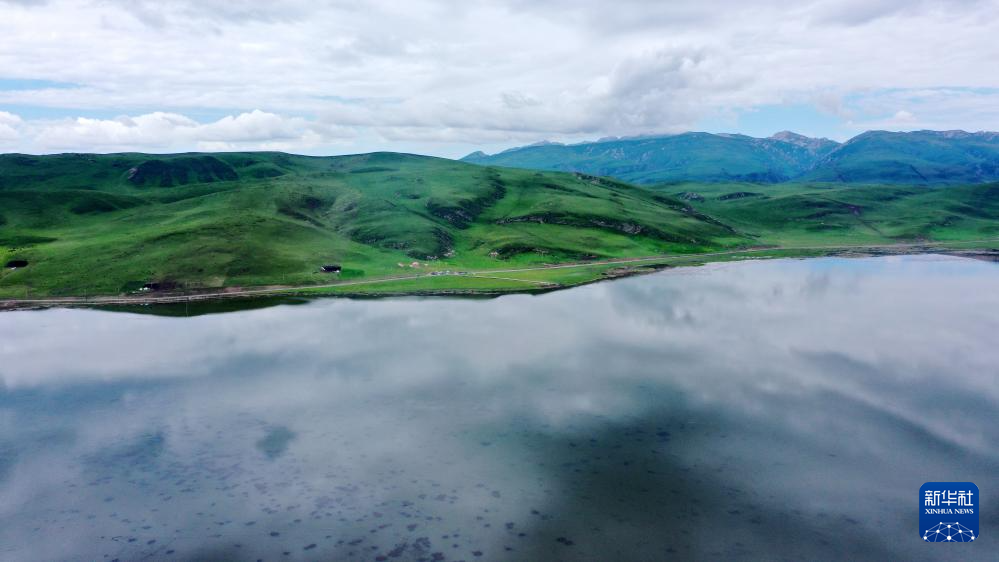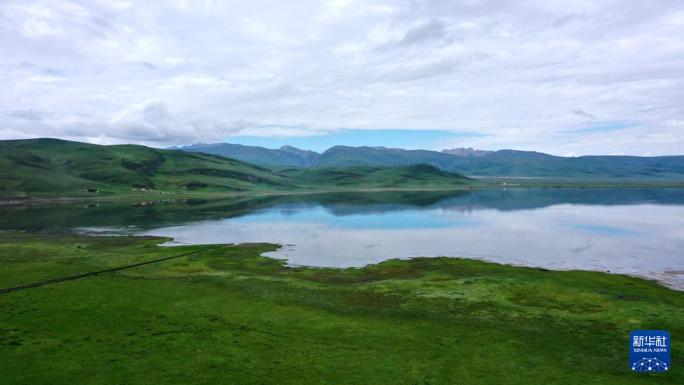 这是甘肃尕海则岔国家级自然保护区尕海湖的景色(7月7日摄,无人机照片)。新华社记者 张可任 摄