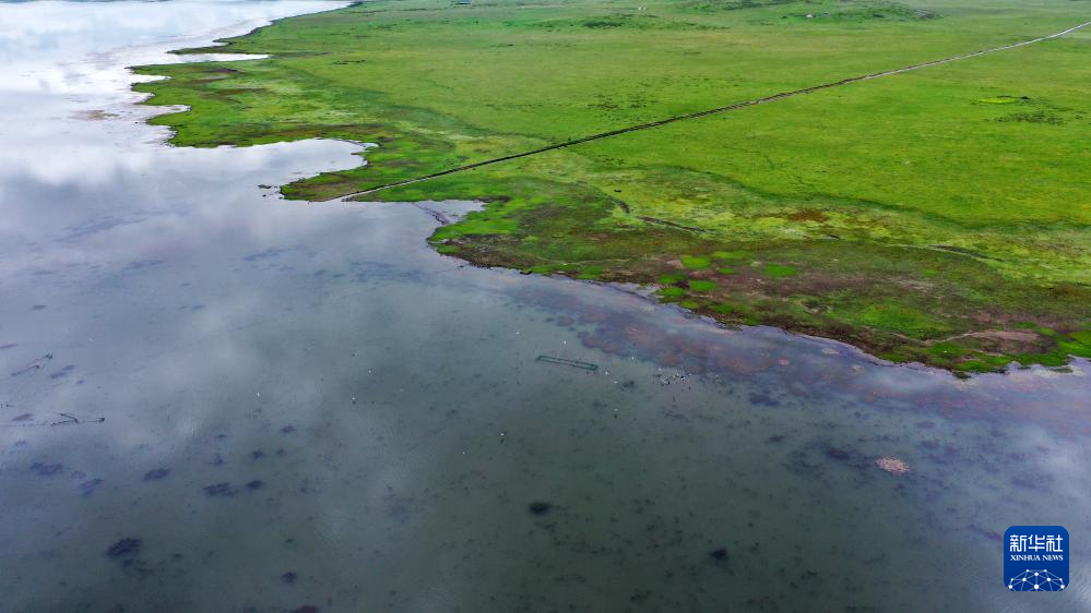 这是甘肃尕海则岔国家级自然保护区尕海湖的景色(7月7日摄,无人机照片)。新华社记者 陈斌 摄