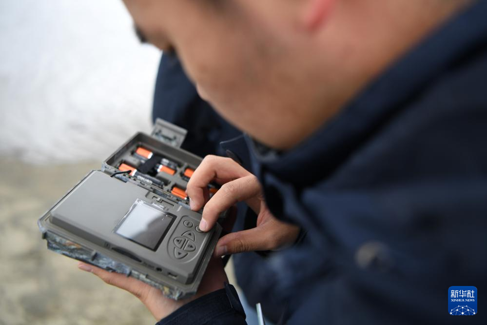 甘肃黄河首曲国家级自然保护区管护中心曼日玛保护站的工作人员在保护区内检查红外相机的工作情况(7月5日摄)。新华社记者 方欣 摄