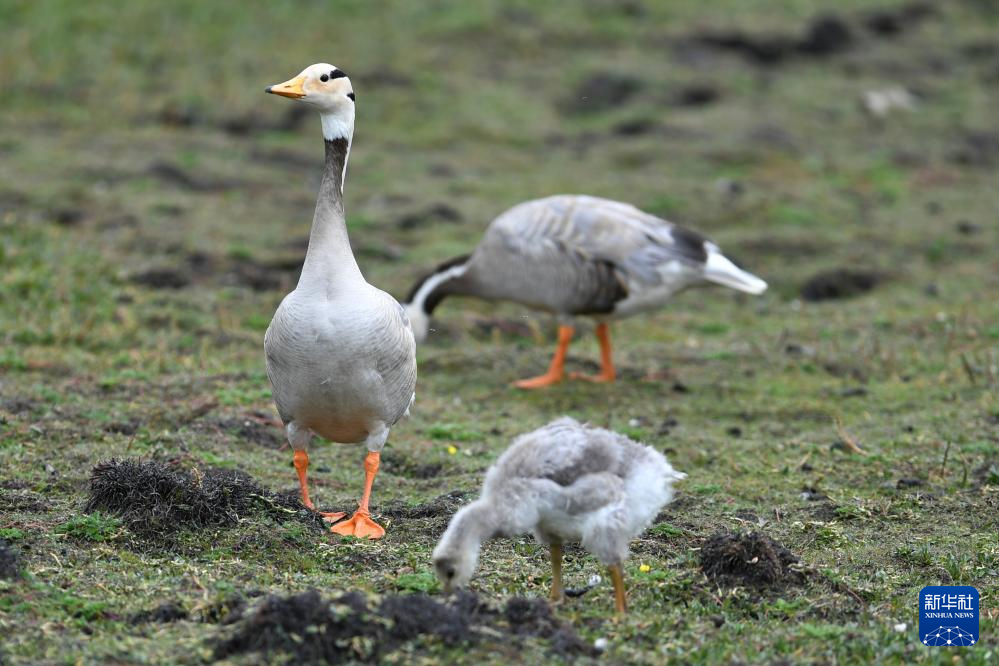 这是在甘肃尕海则岔国家级自然保护区的尕海湿地上拍摄的斑头雁(7月7日摄)。新华社记者 陈斌 摄