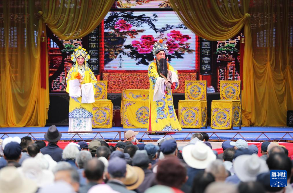 演员在甘肃省定西市体育公园演唱秦腔经典传统剧《周仁回府》(9月21日摄)。新华社发(王克贤摄)