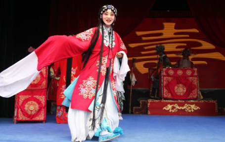 演员在甘肃省定西市体育公园演唱秦腔经典传统剧《打金枝》(9月19日摄)。新华社发(王克贤摄)
