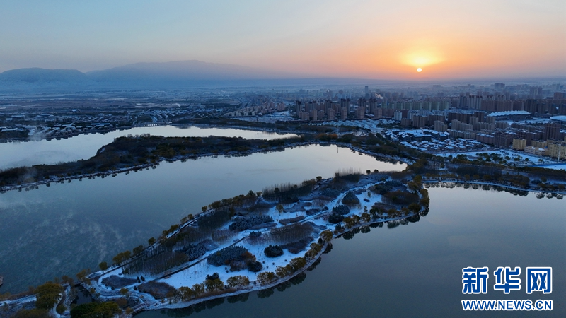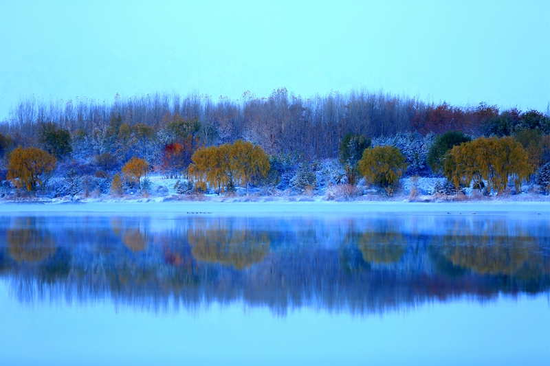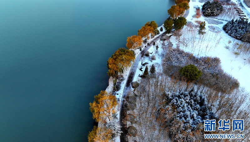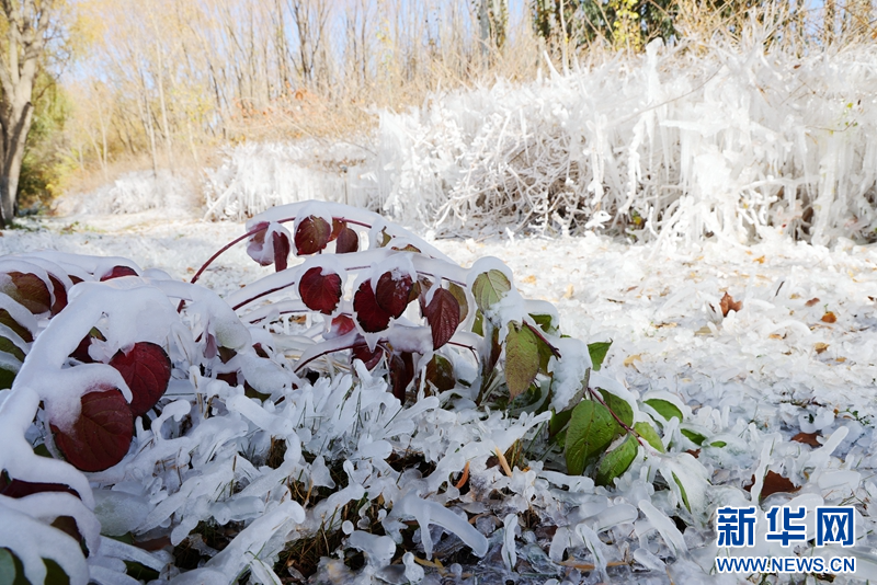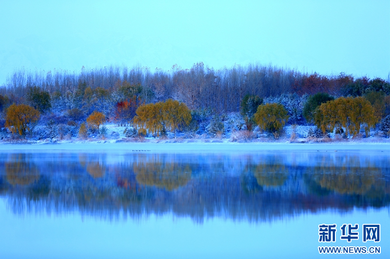 这是11月5日拍摄的雪后张掖市芦水湾生态景区一角。新华网发(杨潇 摄)