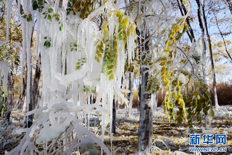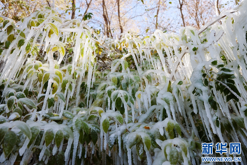 这是11月5日在芦水湾生态景区拍摄的冰挂景观。新华网发(成林 摄)