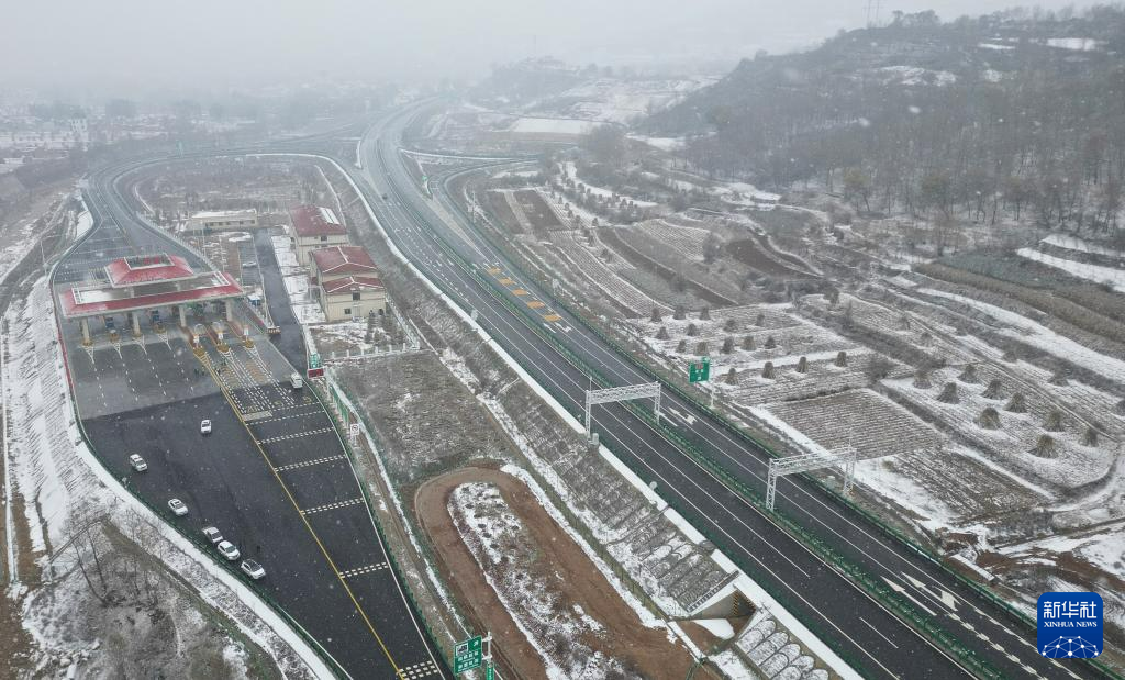这是11月12日拍摄的临大高速公路营滩收费站(无人机照片)。新华社发(史有东 摄)