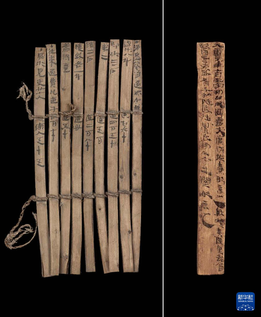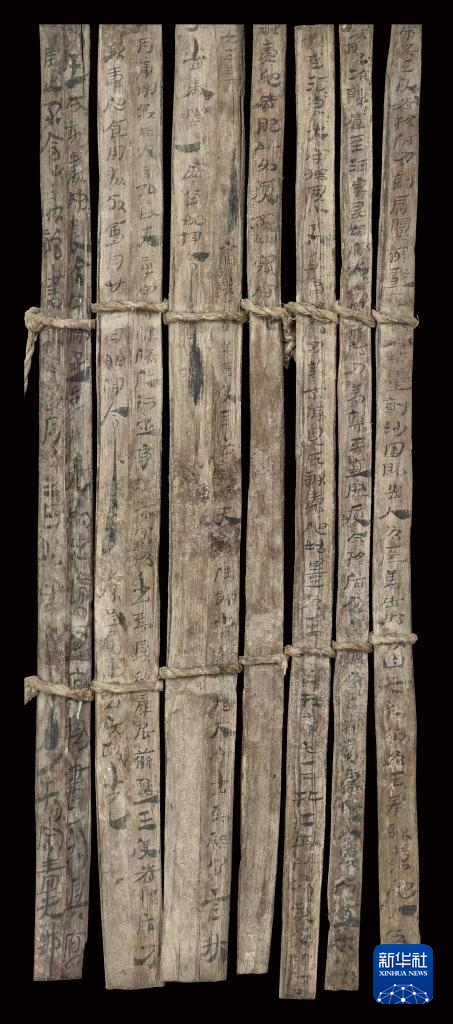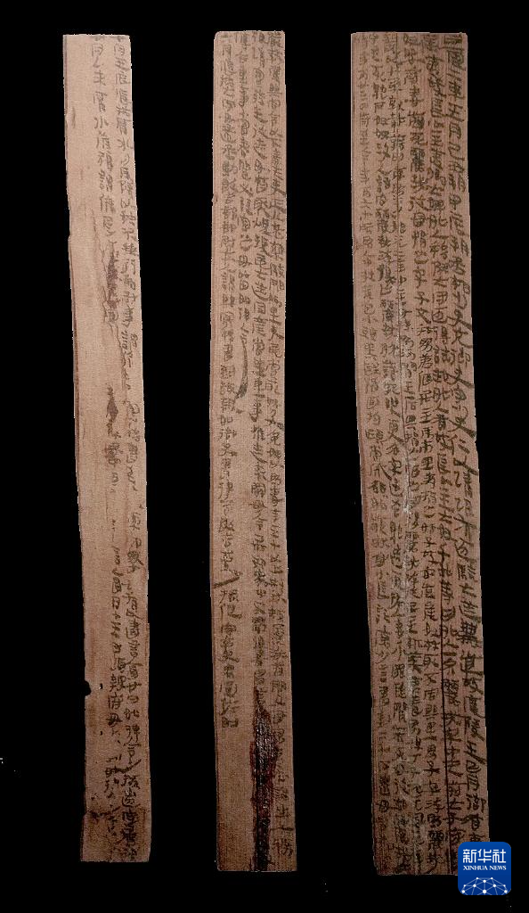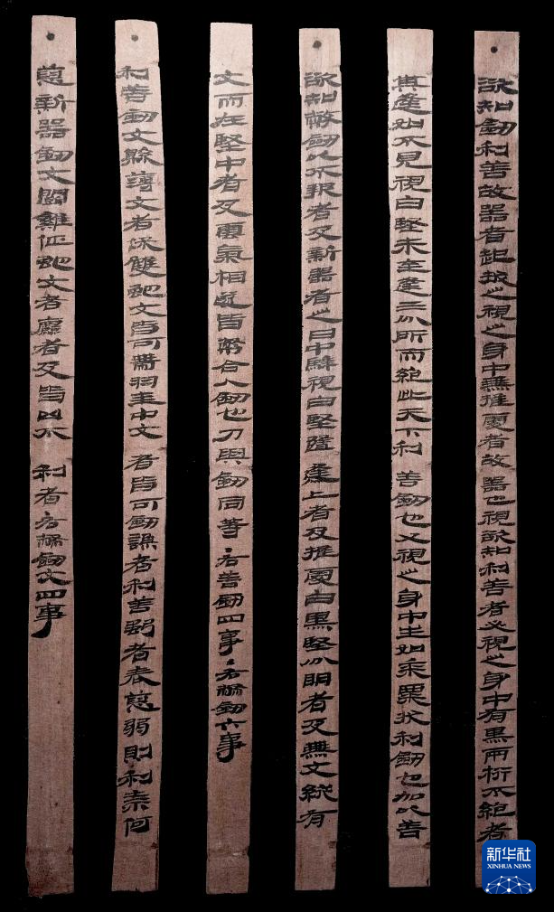 汉简《相利善弊剑册》。此简在书法上有很高造诣,内容主要是辨识宝剑的标准和方法,为后人留下鉴定刀剑的重要知识与技术指导。新华社发(甘肃简牍博物馆供图)