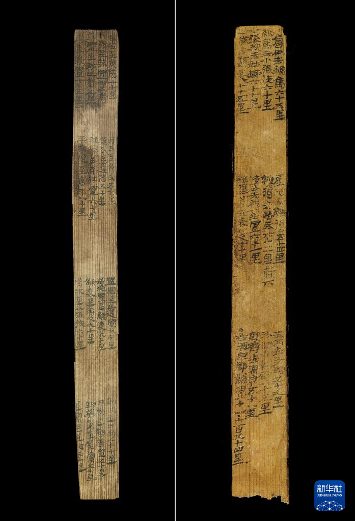 拼版照片:汉简《居延里程简》(左图)和《悬泉里程简》。新华社发(甘肃简牍博物馆供图)