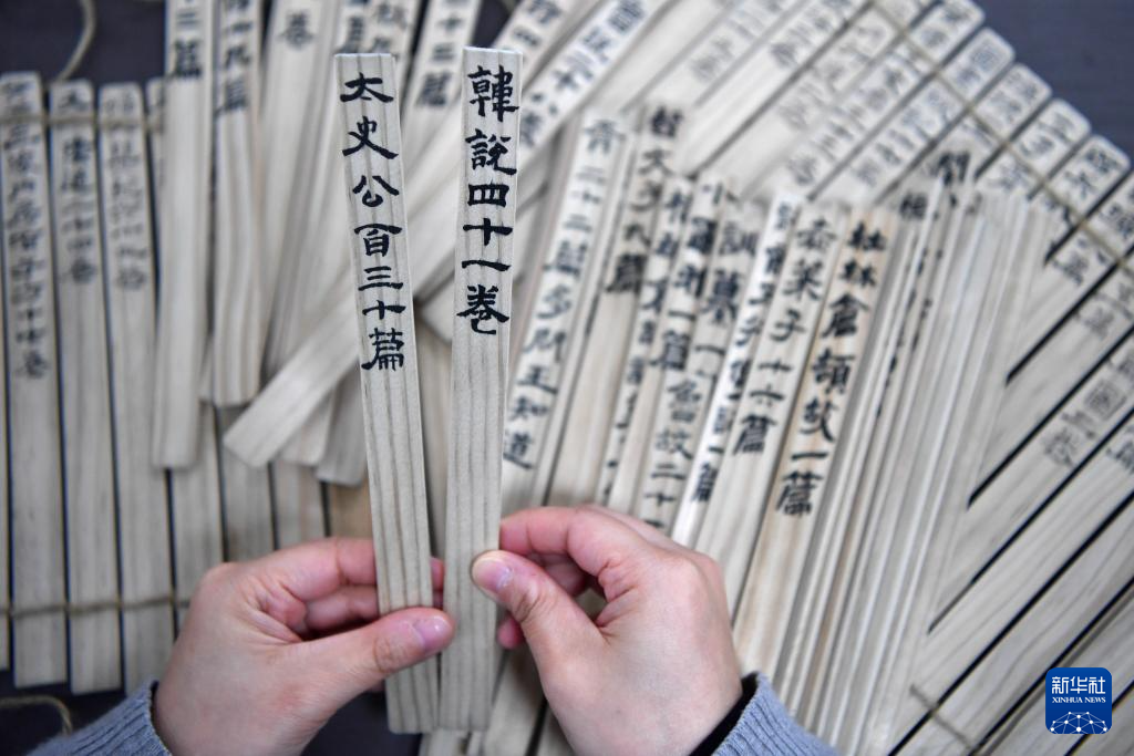 甘肃简牍博物馆工作人员在整理自己制作的简牍,准备用于博物馆的社教体验(10月25日摄)。新华社记者 陈斌 摄