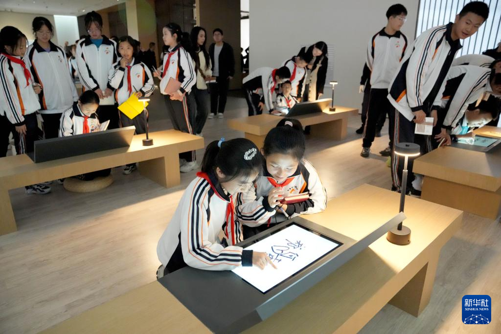 学生在甘肃简牍博物馆参观后签名留念(10月25日摄)。新华社记者 王毓国 摄