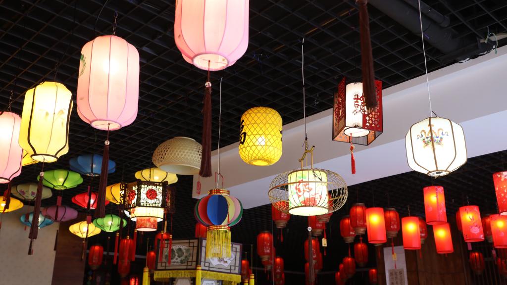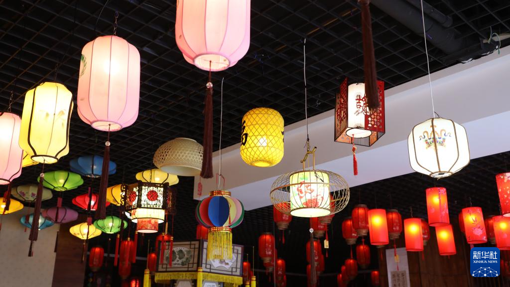 庄浪县宫灯文化产业基地展示大厅内景。新华社记者 张智敏 摄