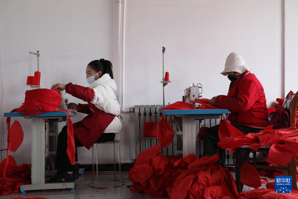 组装车间内,工作人员踏着缝纫机将印染好的布条缝合成完整灯罩。新华社记者 张智敏 摄