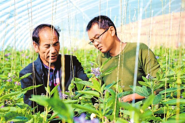 农技人员指导村民打理人参果。