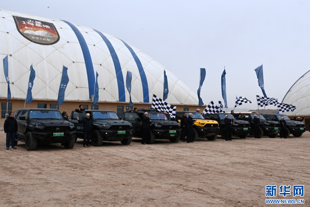 4月1日,在金昌市火星一号基地,嘉宾挥旗启动东风猛士“四季路书·走进河西走廊”活动。