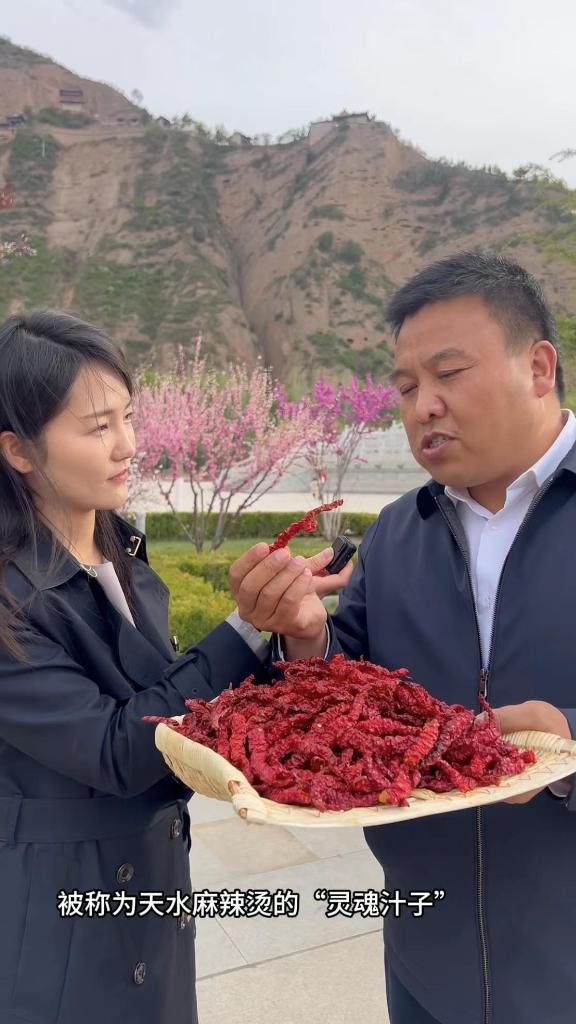甘谷辣椒可以说是天水麻辣烫“吸粉”的制胜法宝。甘谷县文旅局局长手捧辣椒喊话全国网友,带大家一起来体验甘谷辣椒的独特魅力。