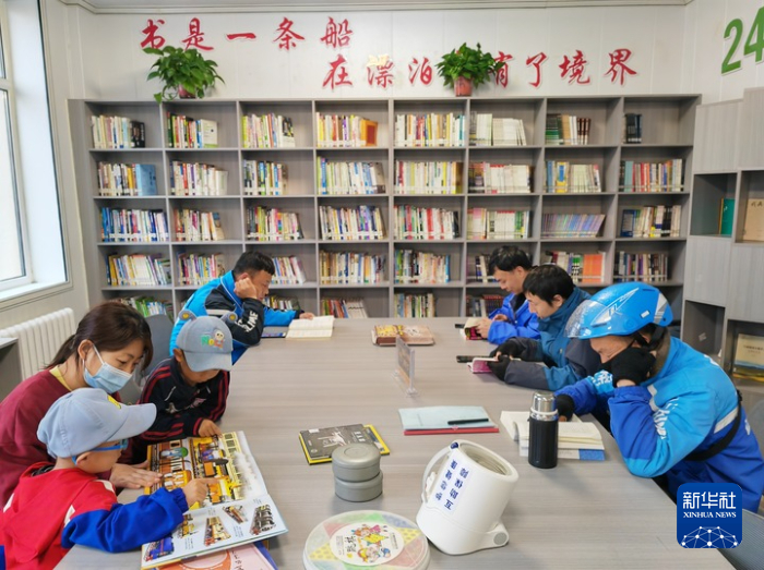 在静宁县一处24小时图书馆,居民、外卖派送员们正在休息、阅读。新华社记者王紫轩 摄