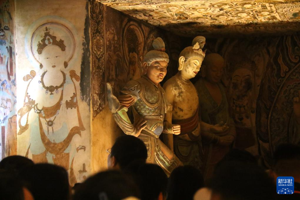 5月4日,游客在甘肃省敦煌市博物馆参观。新华社发(张晓亮 摄)