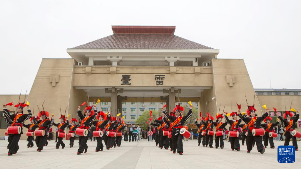 5月3日,演员在甘肃省武威市雷台汉文化博物馆为游客表演凉州攻鼓子舞。新华社发(姜爱平 摄)