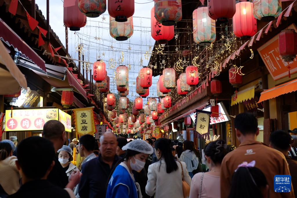 5月1日,游客在甘肃省天水市秦州区天水古城游览。新华社记者 王紫轩 摄