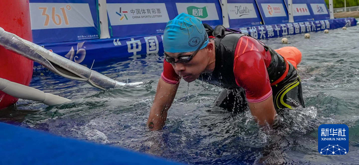 43岁的程序员刘德斌夺得此次铁人三项长城戈壁挑战赛男子精英组亚军,他还获得了2024年西班牙铁人三项世锦赛的参赛资格。