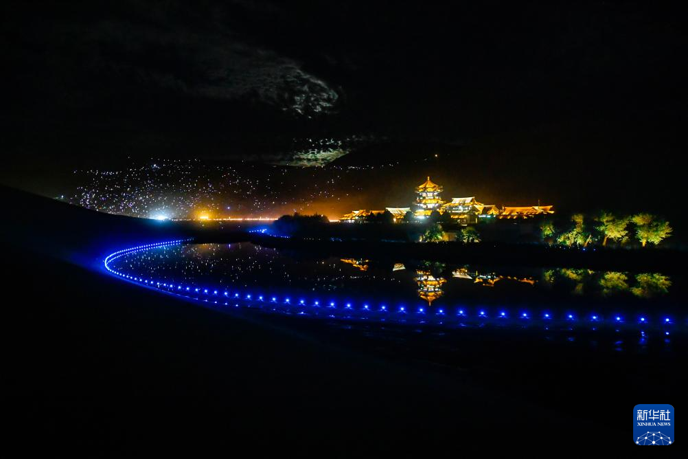 7月20日晚,游客在敦煌鸣沙山月牙泉景区参加沙漠万人星空演唱会。新华社记者 郎兵兵 摄