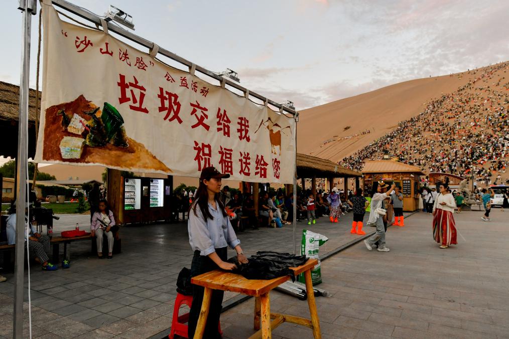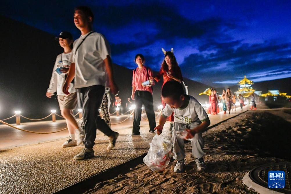今年暑期,随着沙漠万人星空演唱会火爆出圈,甘肃省敦煌市鸣沙山月牙泉景区日均接待游客达2万人次。景区推出的“沙山洗脸”公益活动,通过捡垃圾兑换小礼品等方式,引导游客在享受沙漠万人星空演唱会浪漫的同时,共同守护鸣沙山的生态环境。