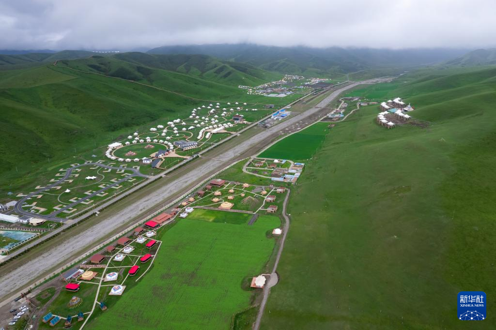 7月8日拍摄的乌鞘岭下的抓喜秀龙草原帐篷城(无人机照片)。新华社记者 范培珅 摄