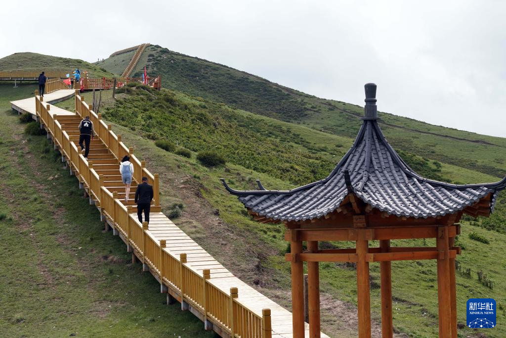 7月8日,游客在乌鞘岭上的木栈道上游览赏景。新华社记者 马宁 摄