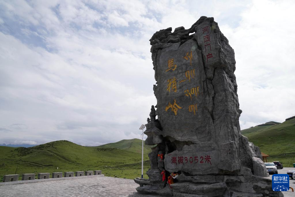 7月8日在乌鞘岭上拍摄的“河西门户乌鞘岭”石碑。新华社记者 马宁 摄