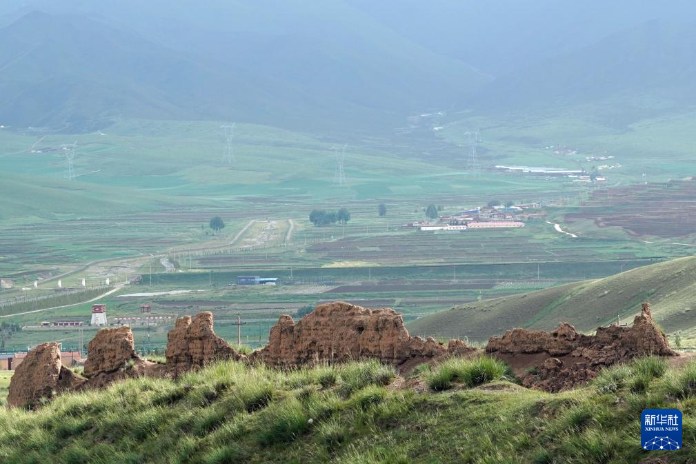 7月8日拍摄的乌鞘岭下的明长城和远处的村庄。新华社记者 马宁 摄