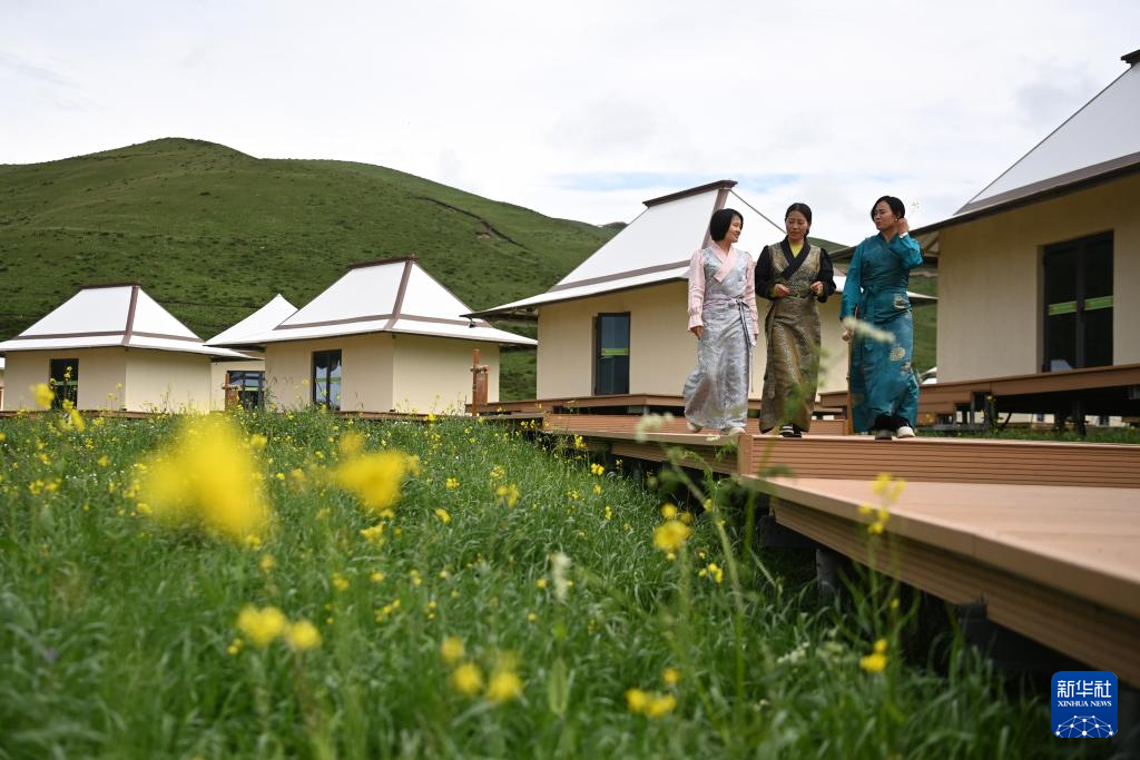7月8日,游客在乌鞘岭下的抓喜秀龙草原帐篷城游览。新华社记者 范培珅 摄