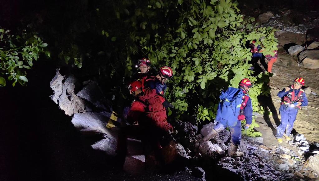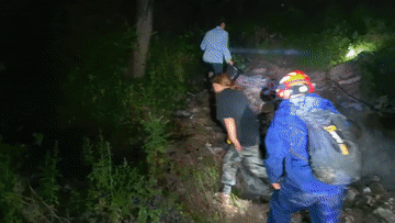 7月24日,突击队在黑夜中挺进。(陇南市消防救援支队供图)
